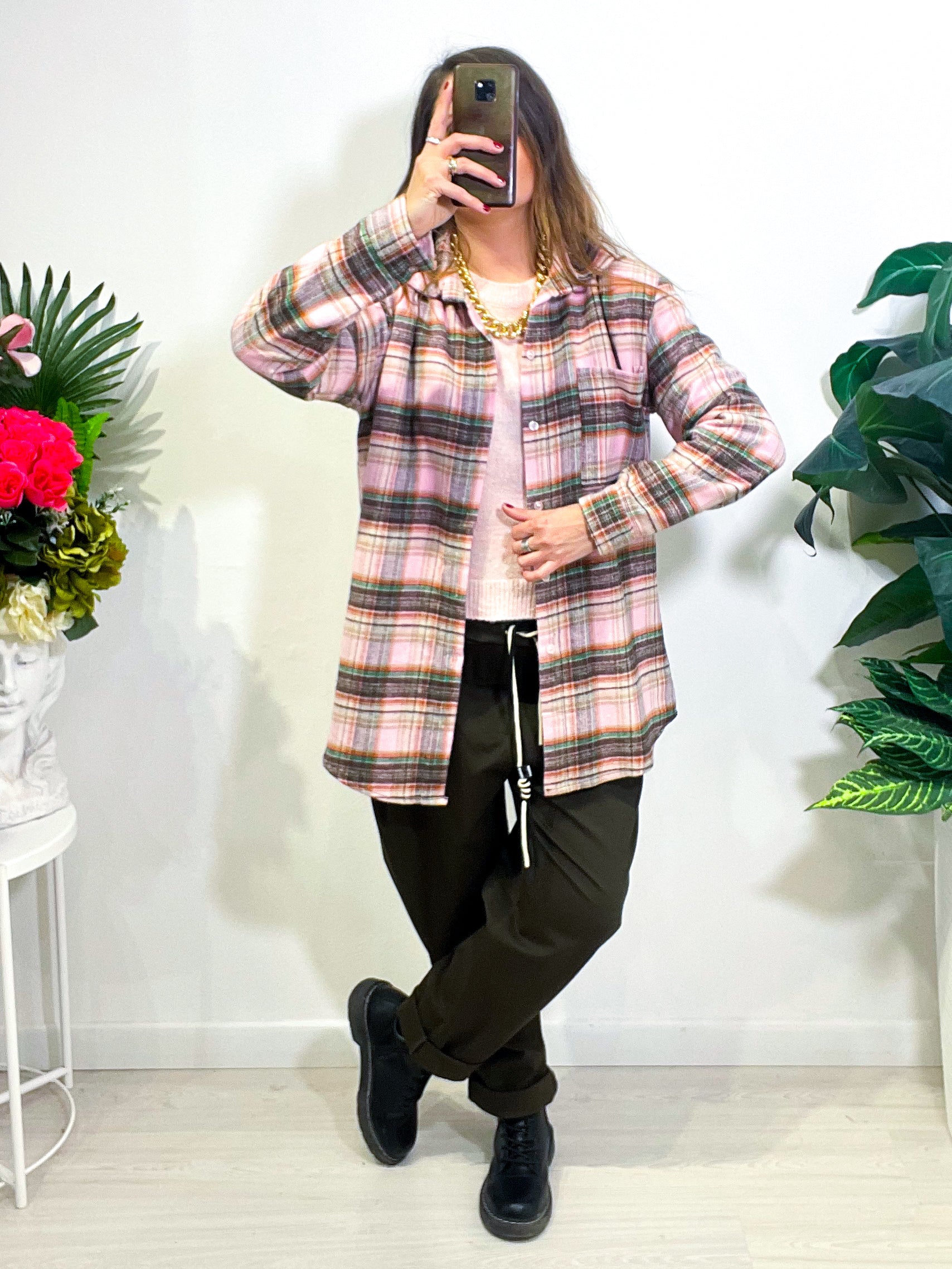 Camicia in misto caldo cotone in fantasia a quadroni con spalline. Super comoda, super figa. Taglia unica con vestibilità fino ad una L morbida.