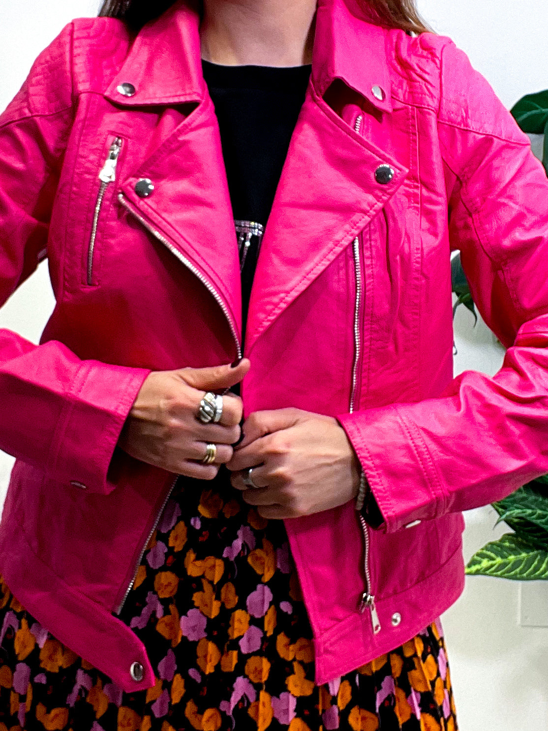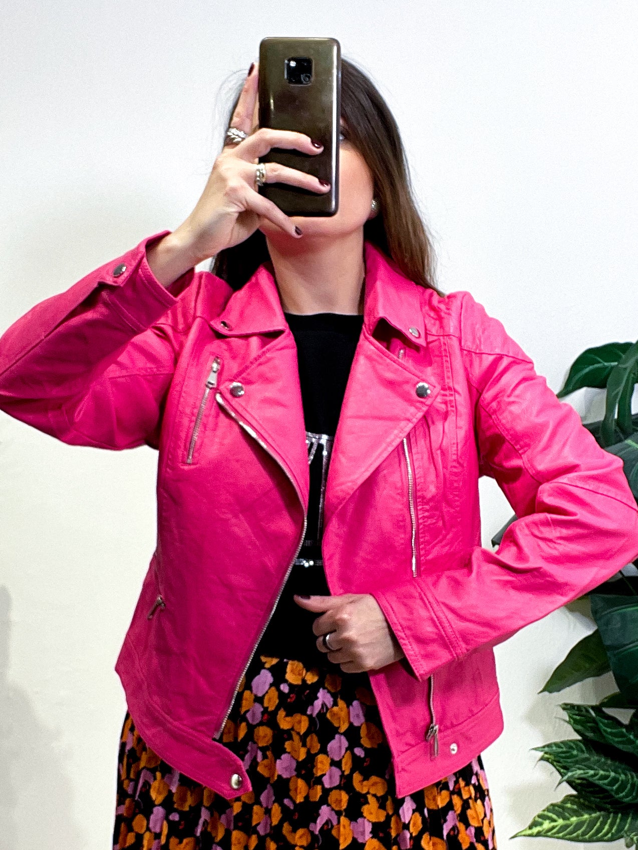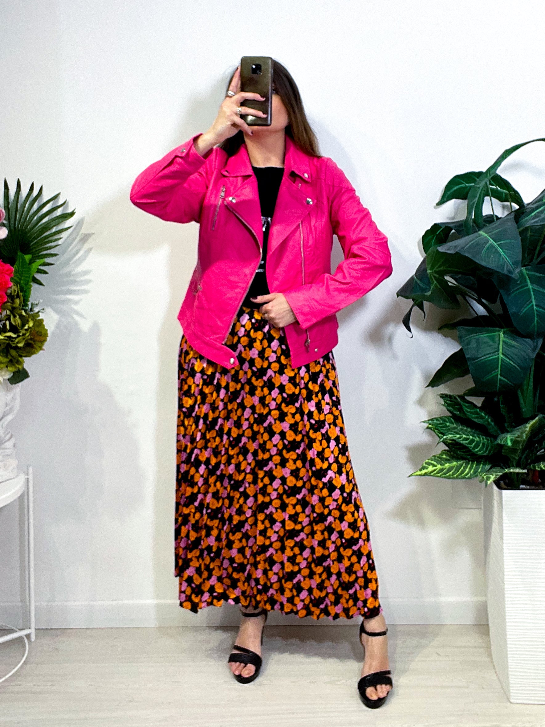 Giacchetto Chiodo in tessuto ecopelle e super morbido con ampio rever e maniche ampie. Zip davanti, non foderato. In taglia S M L XL XXL