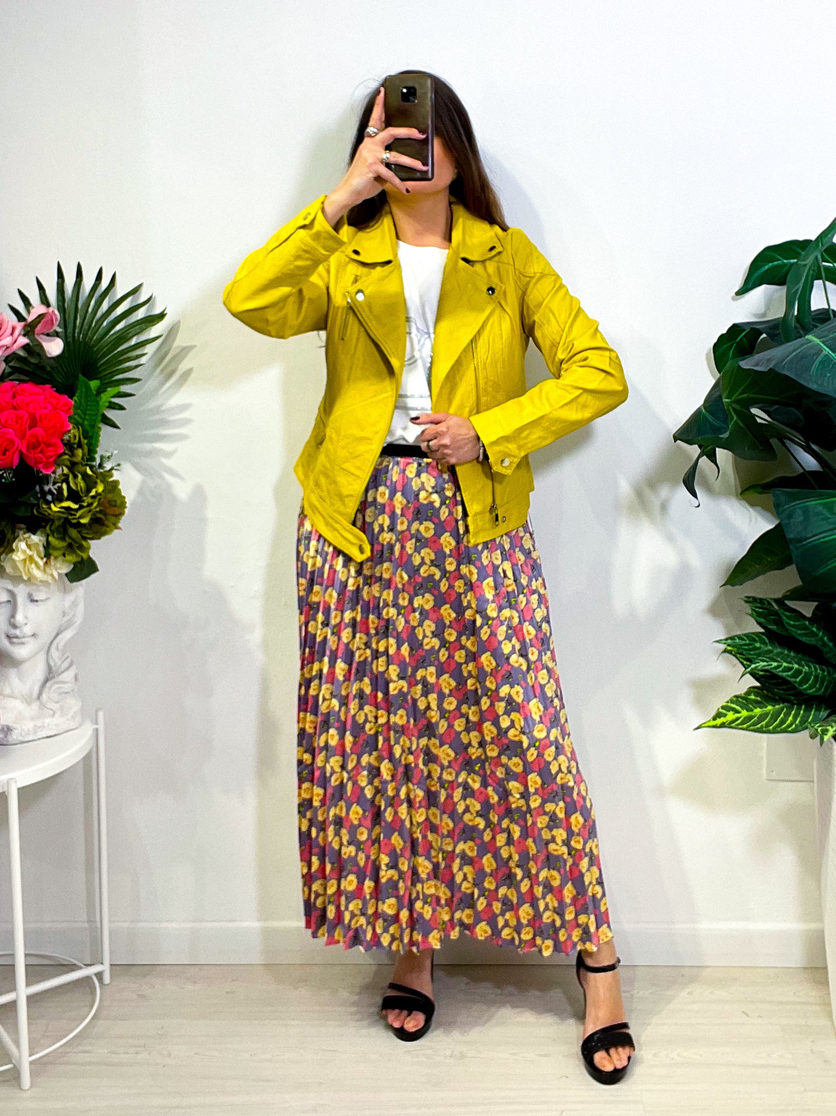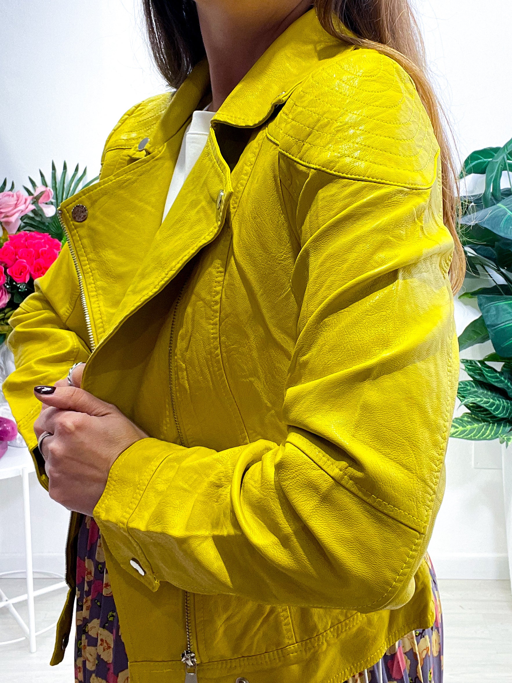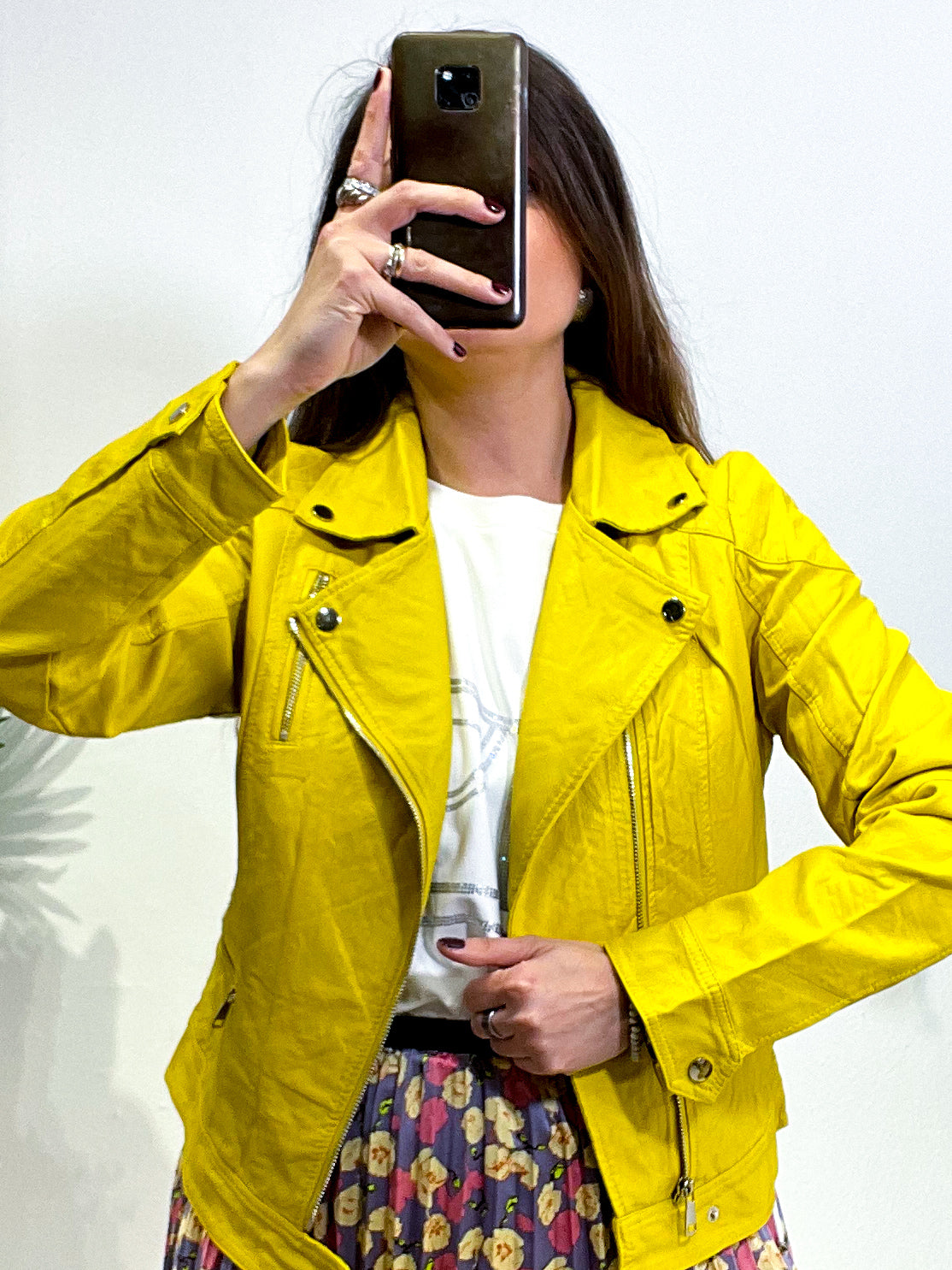 Giacchetto Chiodo in tessuto ecopelle e super morbido con ampio rever e maniche ampie. Zip davanti, non foderato. In taglia S M L XL XXL