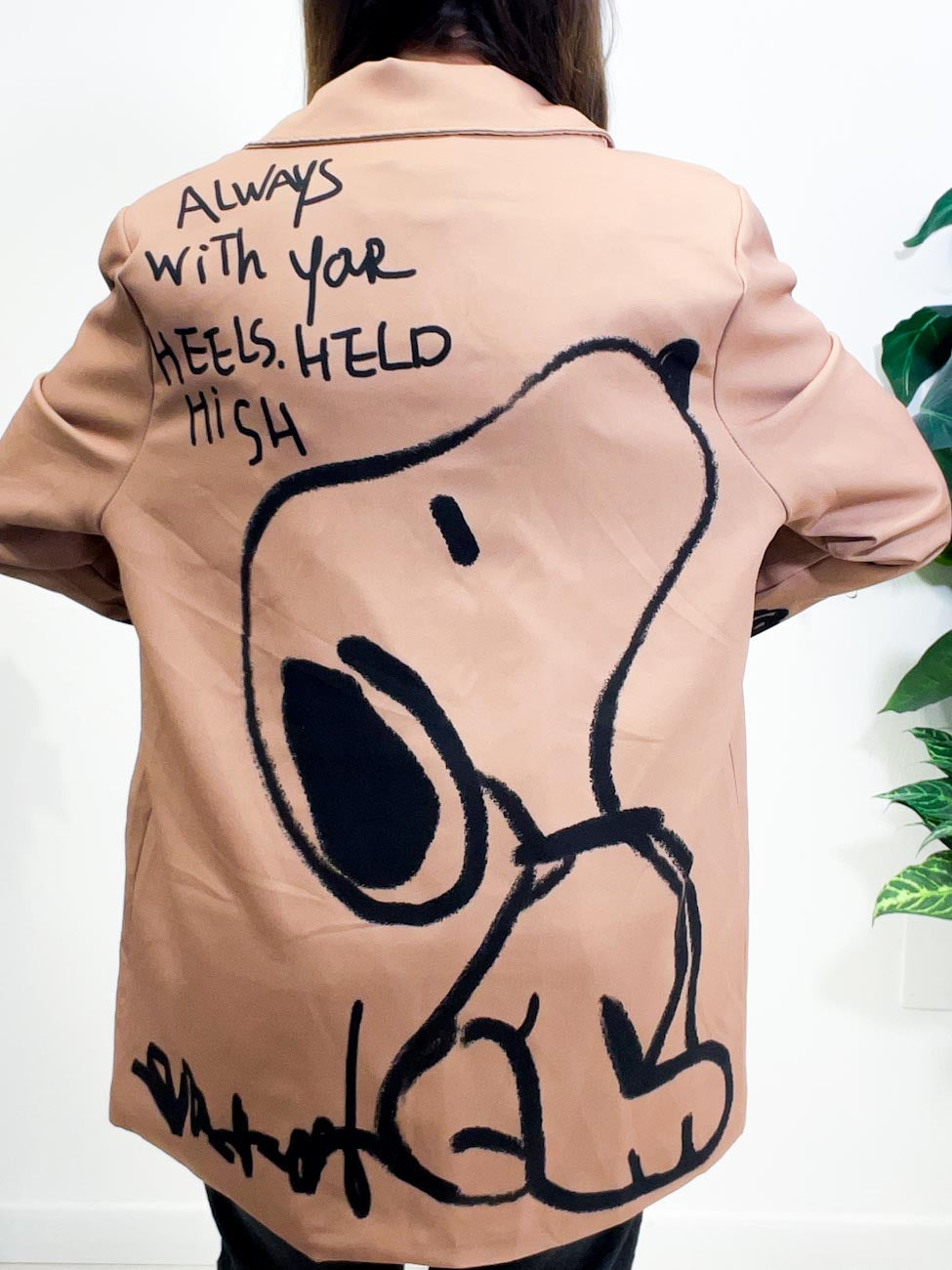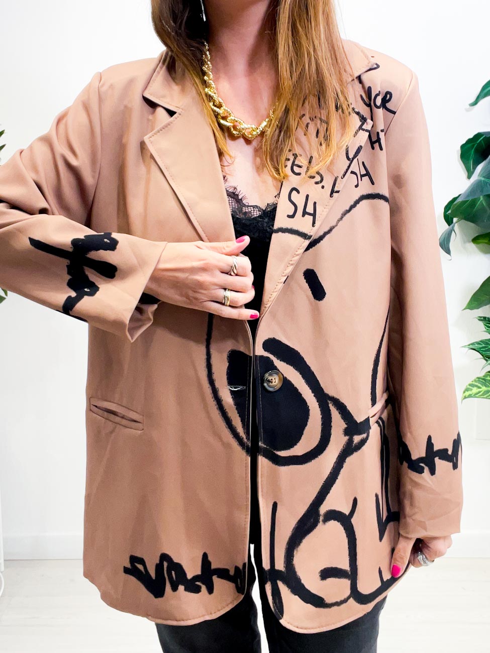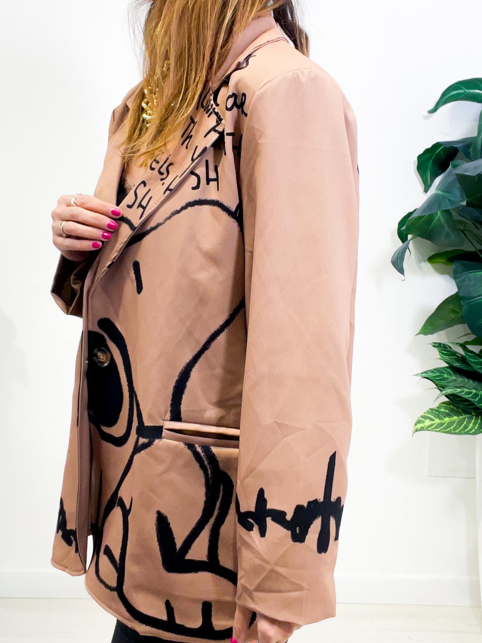 Giacca con stampa Cartoon sia sul davanti che sul retro, per un tocco di originalità e colore, su tessuto giacca classica. La fodera interna e le spalline garantiscono una vestibilità strutturata e comoda. Tasche. Disponibile in taglia unica, adatta a chi indossa fino alla taglia L, per un look divertente e versatile, perfetto per aggiungere personalità a qualsiasi outfit.