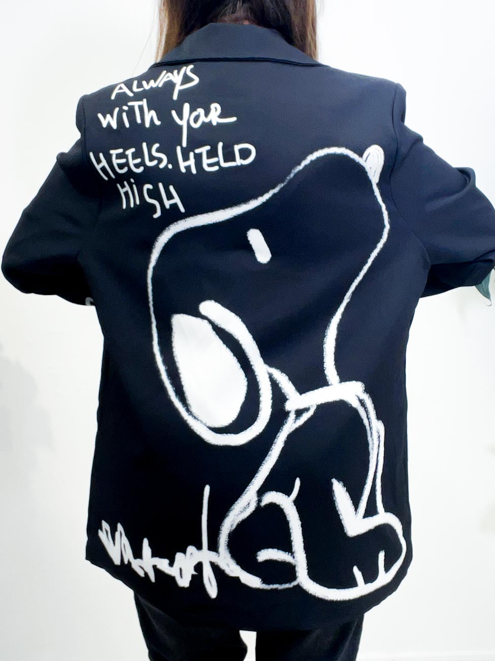 Giacca con stampa Cartoon sia sul davanti che sul retro, per un tocco di originalità e colore, su tessuto giacca classica. La fodera interna e le spalline garantiscono una vestibilità strutturata e comoda. Tasche. Disponibile in taglia unica, adatta a chi indossa fino alla taglia L, per un look divertente e versatile, perfetto per aggiungere personalità a qualsiasi outfit.