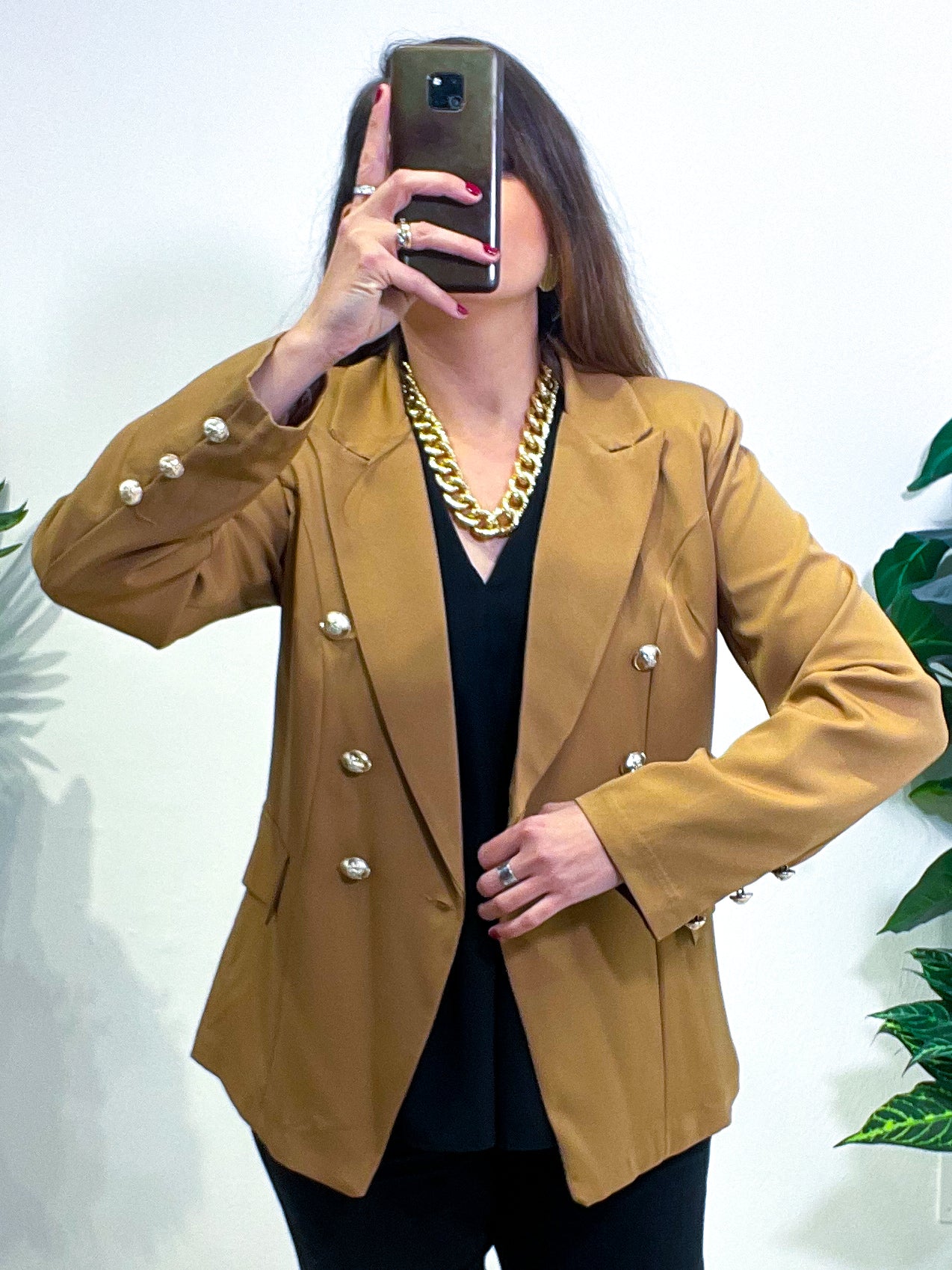 Giacca doppiopetto con bottoni in contrasto. Finte tasche con pattina. Bottoni anche ai polsini che danno un effetto super elegante. In taglia SML con vestibilità morbida. Un capo dallo stile particolare, perfetto per chi cerca un look deciso e diverso dal solito.