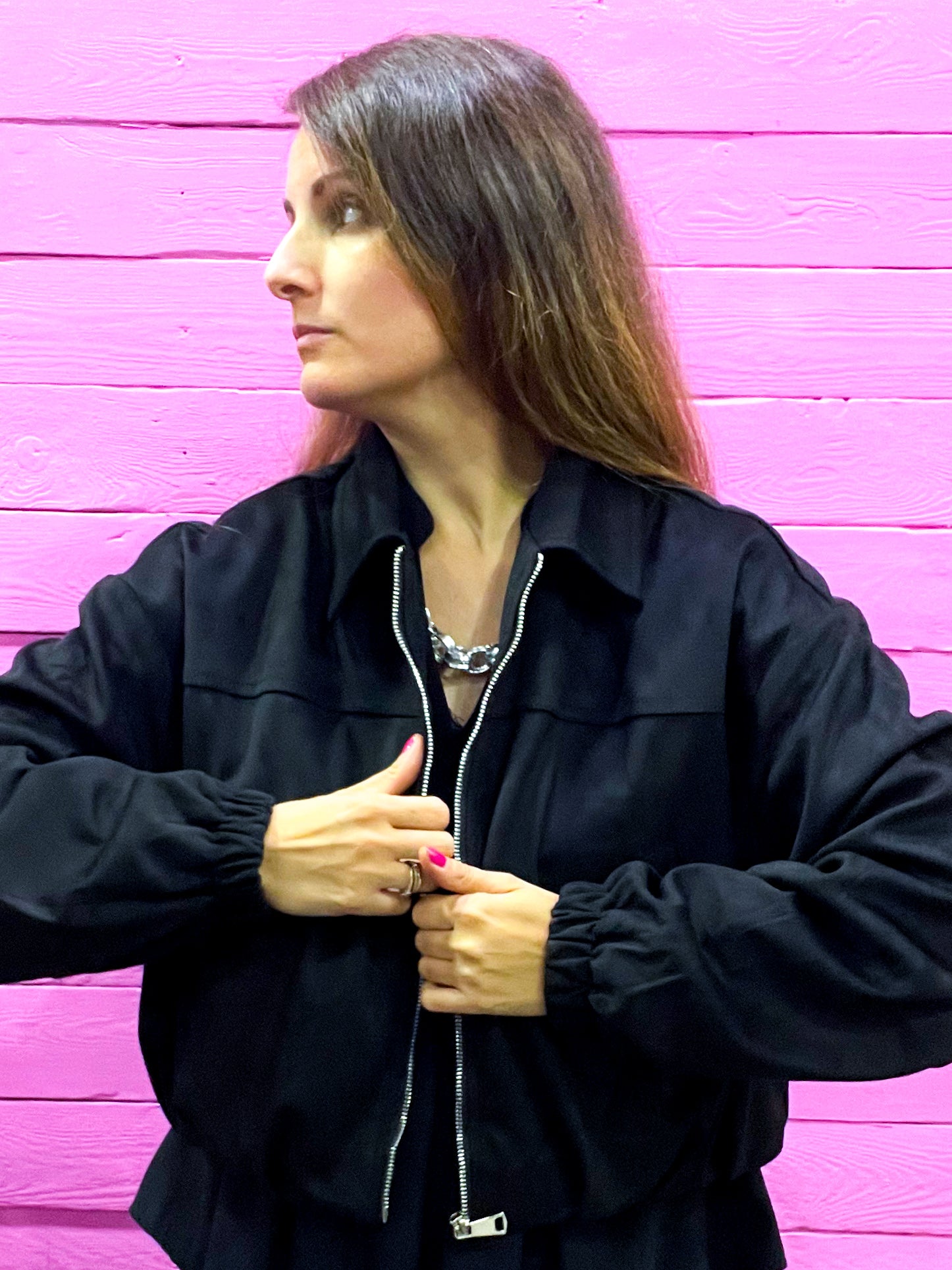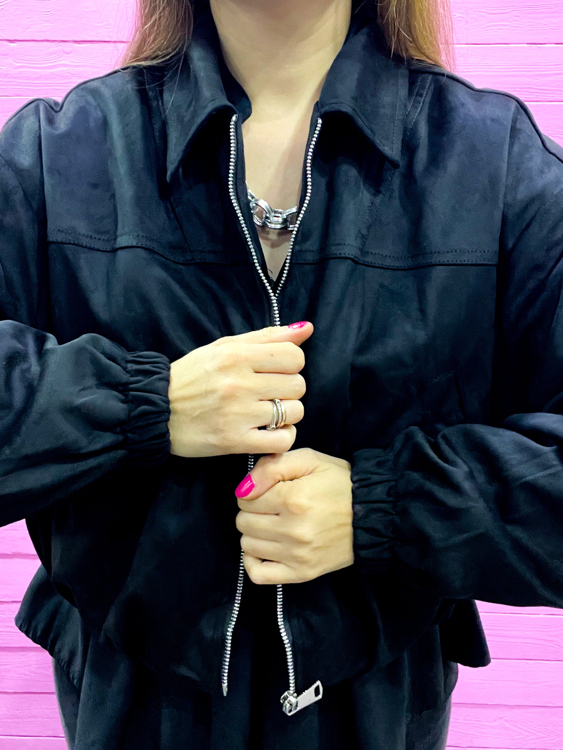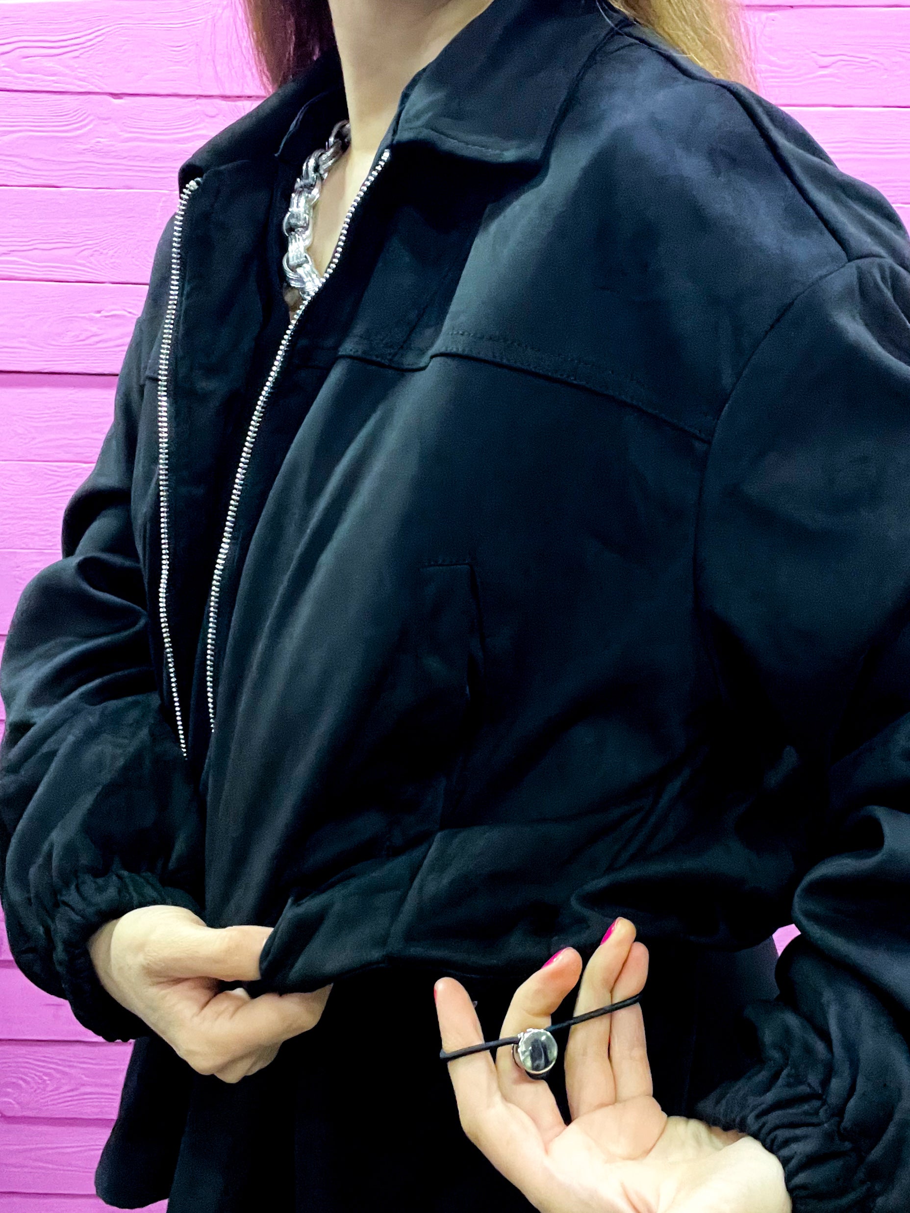 Un giacchetto in tessuto simil scamosciato e super soffice. Cerniera davanti ed elastico ai polsini e alla base. Coulisse laterale interna per regolare la base e arricciarla. Taglia unica che va fino a una M/L.