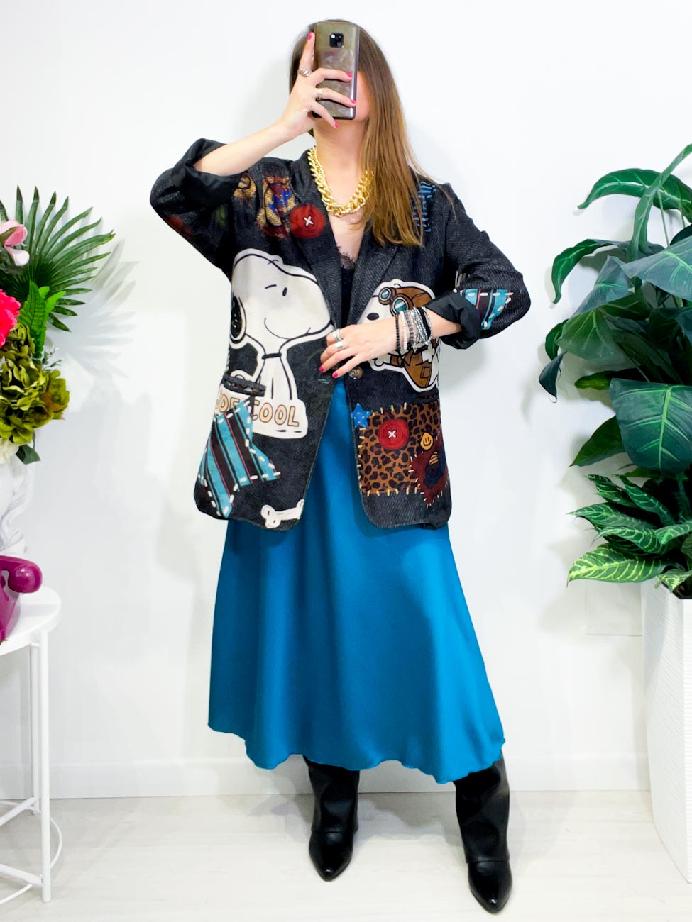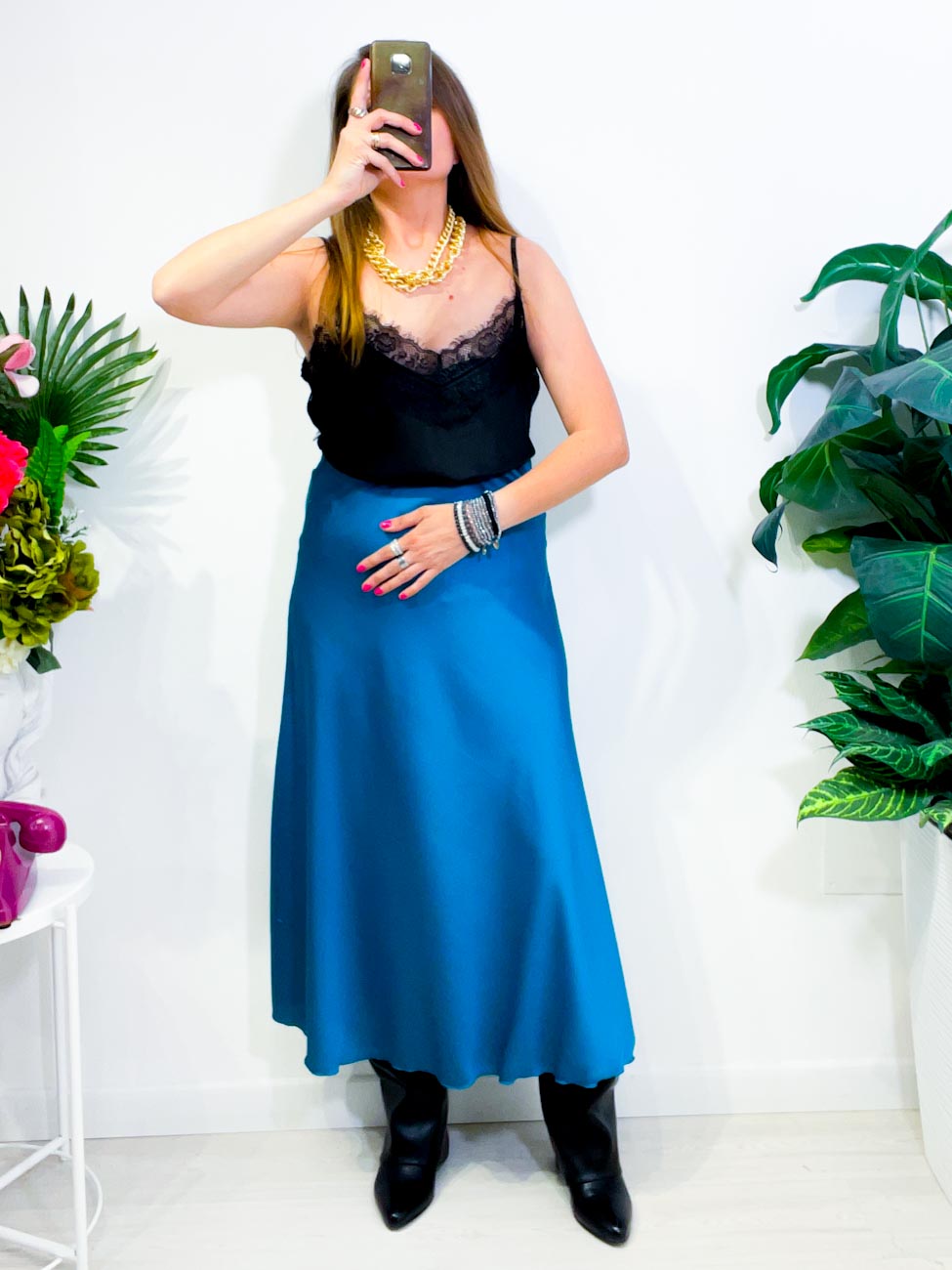Gonna in similraso con lunghezza 3/4 e elastico in vita, perfetta per un look elegante e comodo. La Gonna Loren è taglia unica, con una vestibilità che arriva fino a una M. Un capo versatile che si adatta facilmente a diverse occasioni, per un tocco di classe senza rinunciare al comfort.