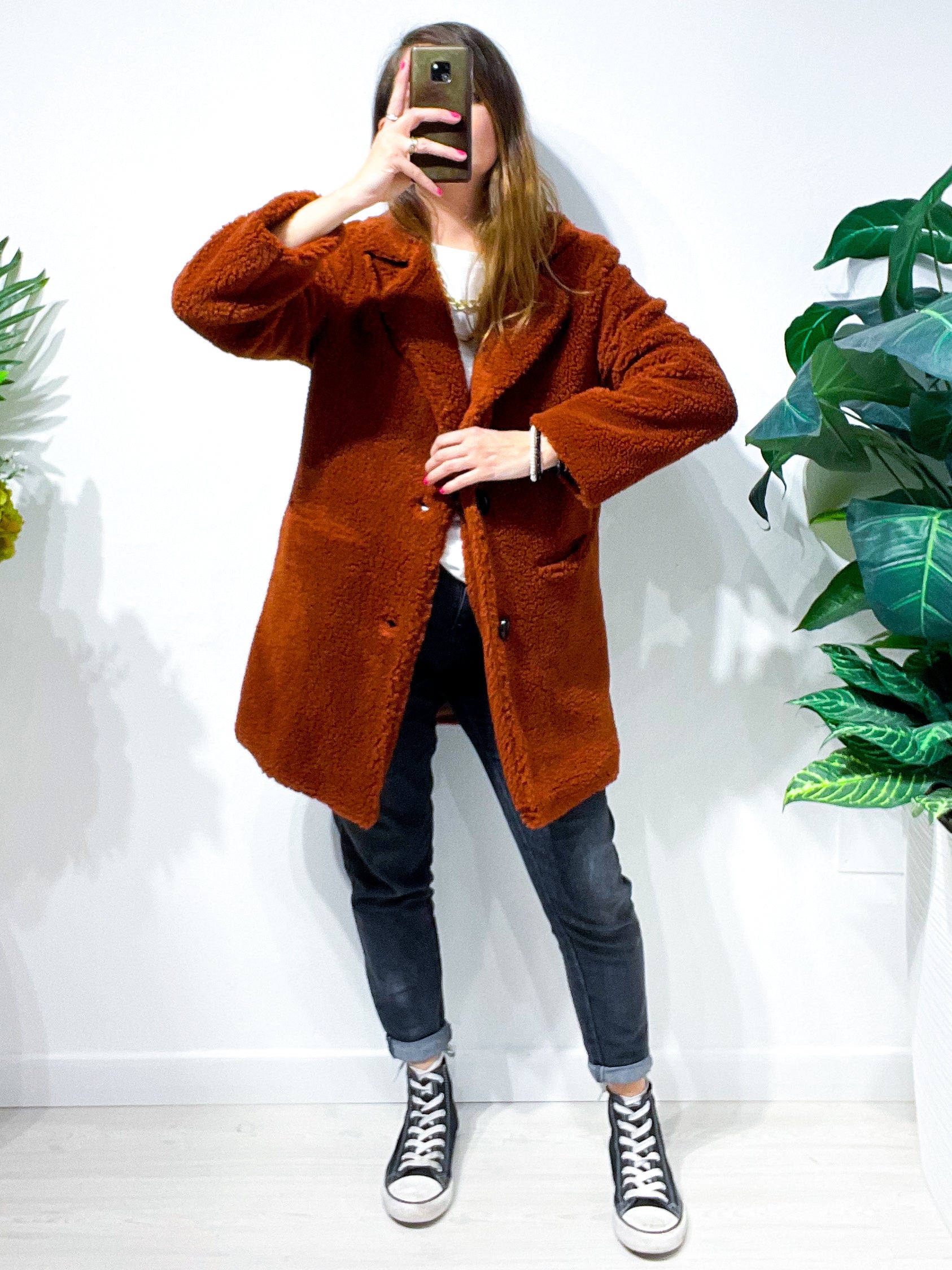 "Perché scegliere tra comfort e stile quando puoi avere entrambi? La giacca con doppio bottone e tasche laterali ti fa sentire come se stessi abbracciando un orsacchiotto, ma con classe. Foderata. Taglia unica con ampia vestibilità fino ad una XL.
